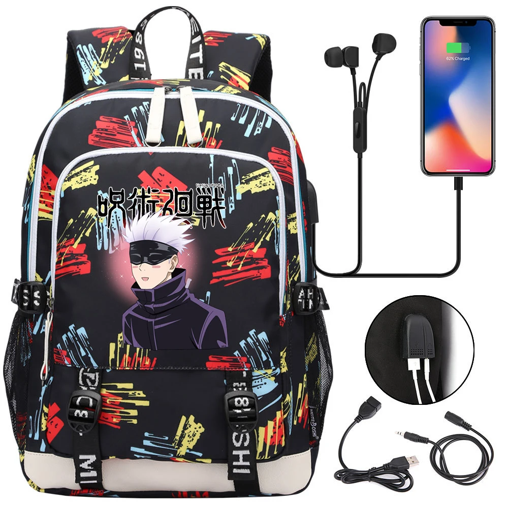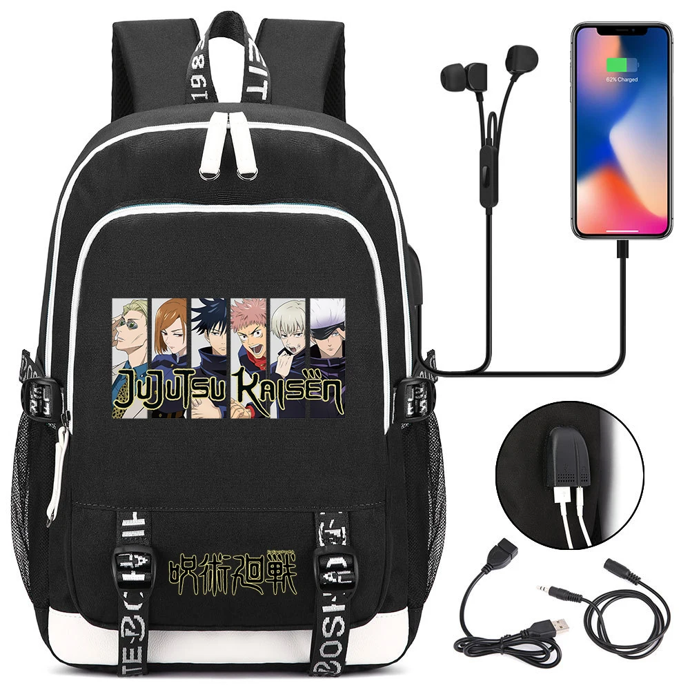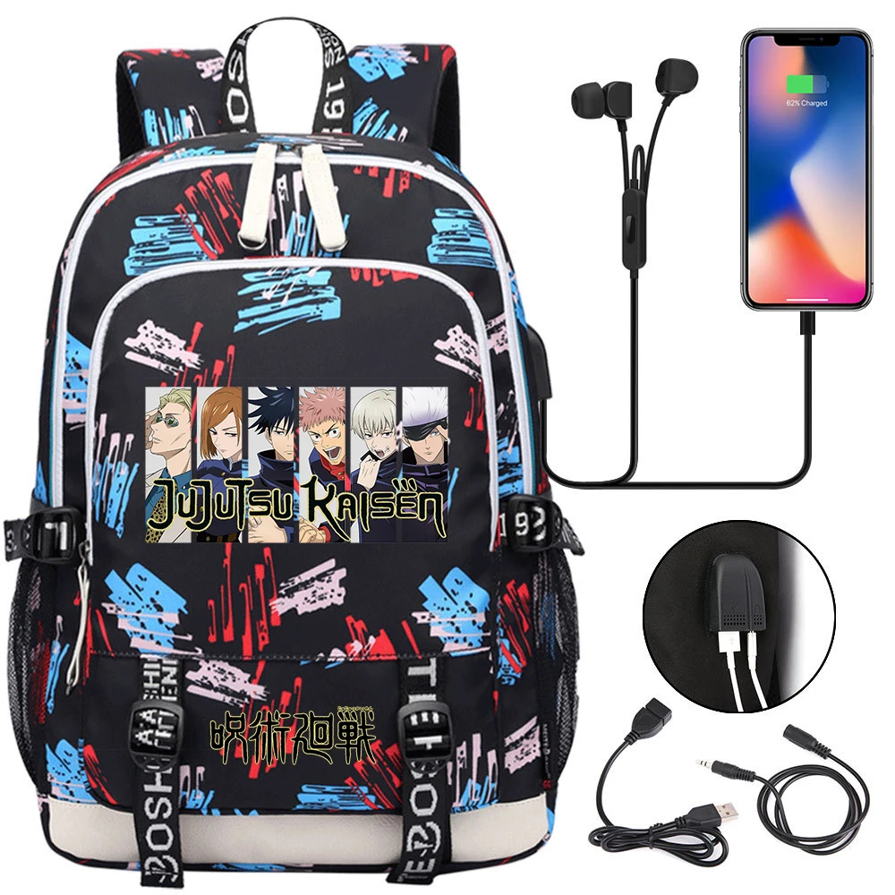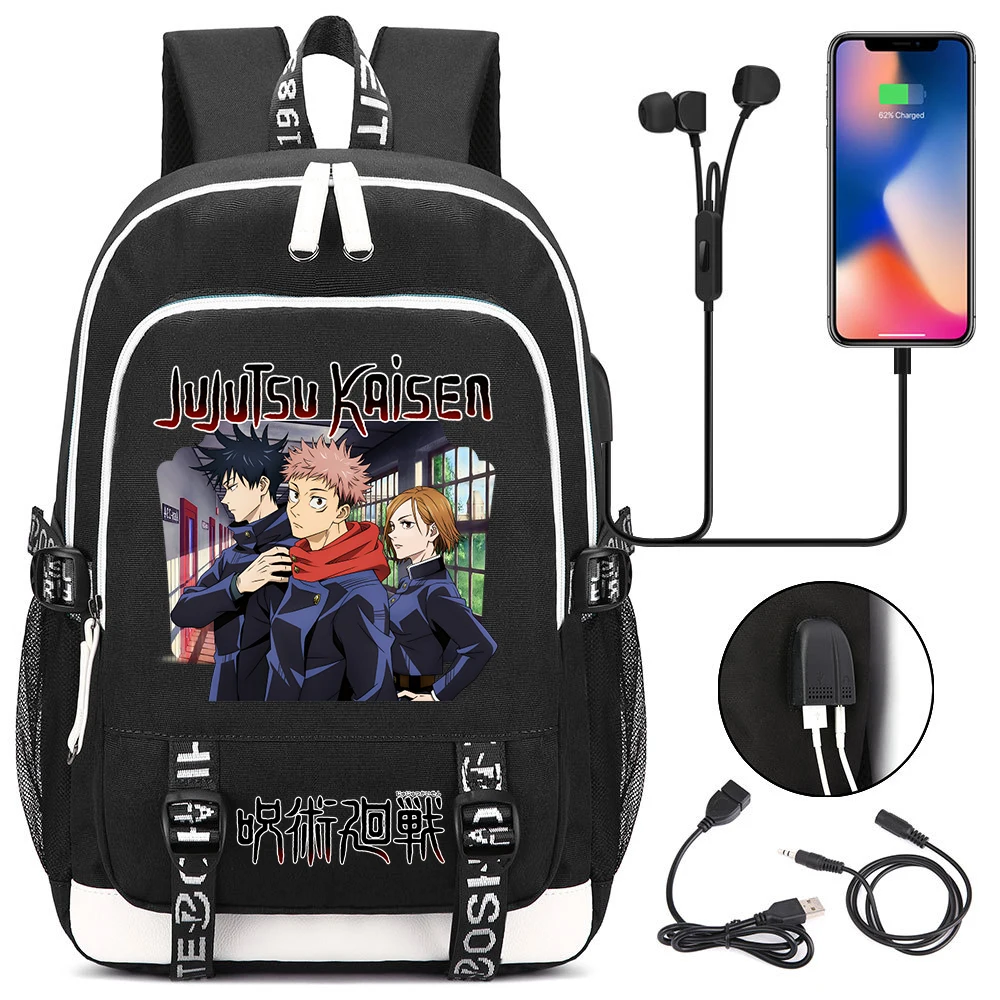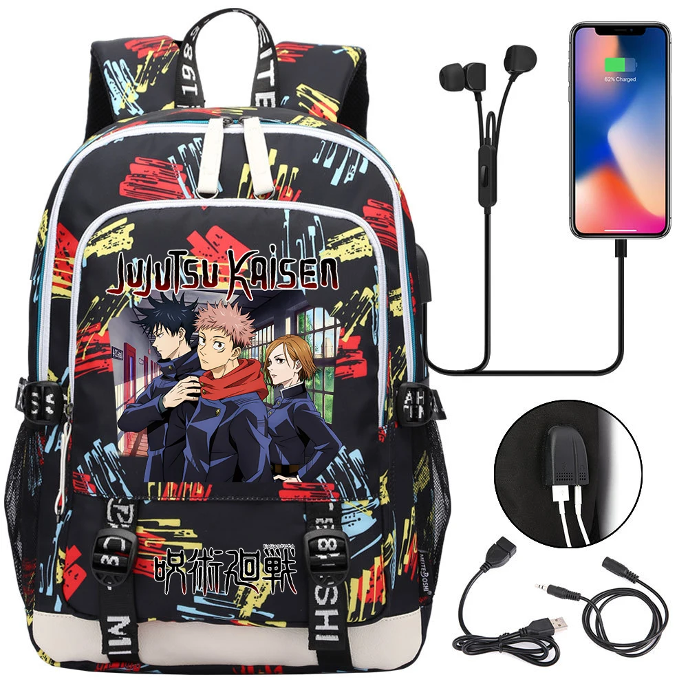 Color: army green - Hot Jujutsu Kaisen Backpack Men Women USB Charging Laptop Travel Backpack Teena F640-12000042924505257